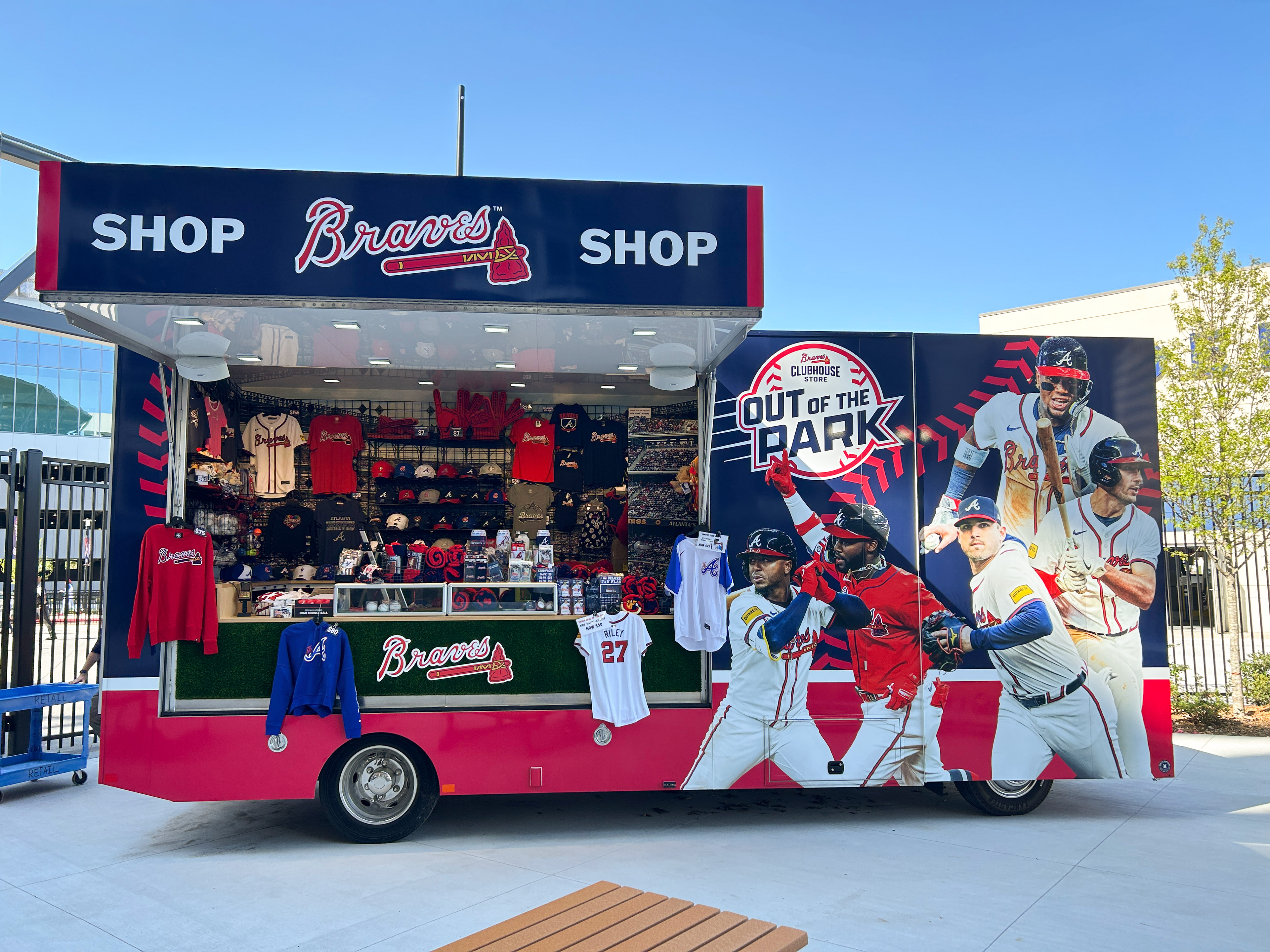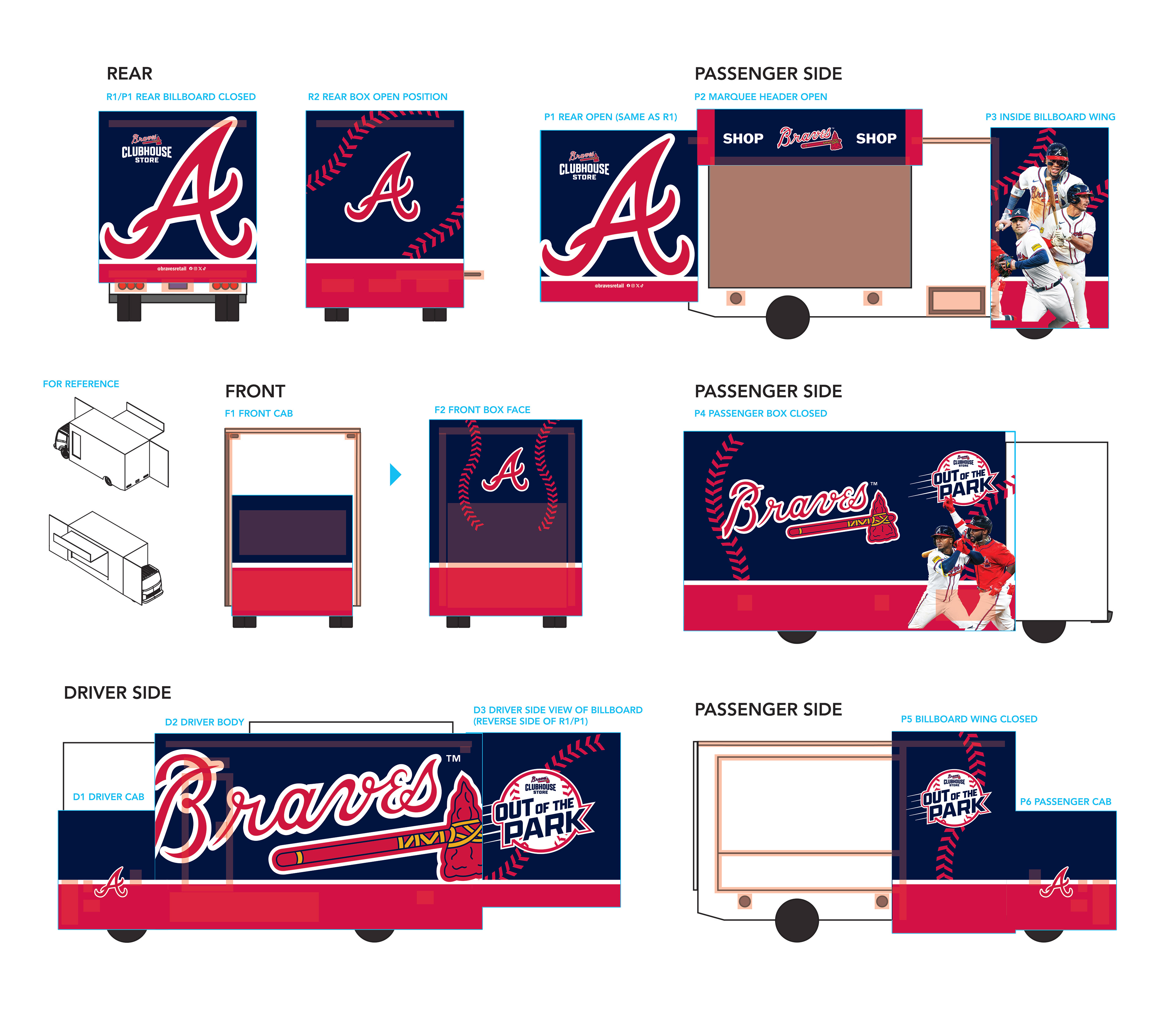 This custom box truck serves as a mobile retail shop where fans can purchase Braves gear. It presented a unique challenge as it has multiple moving panels and doors.
