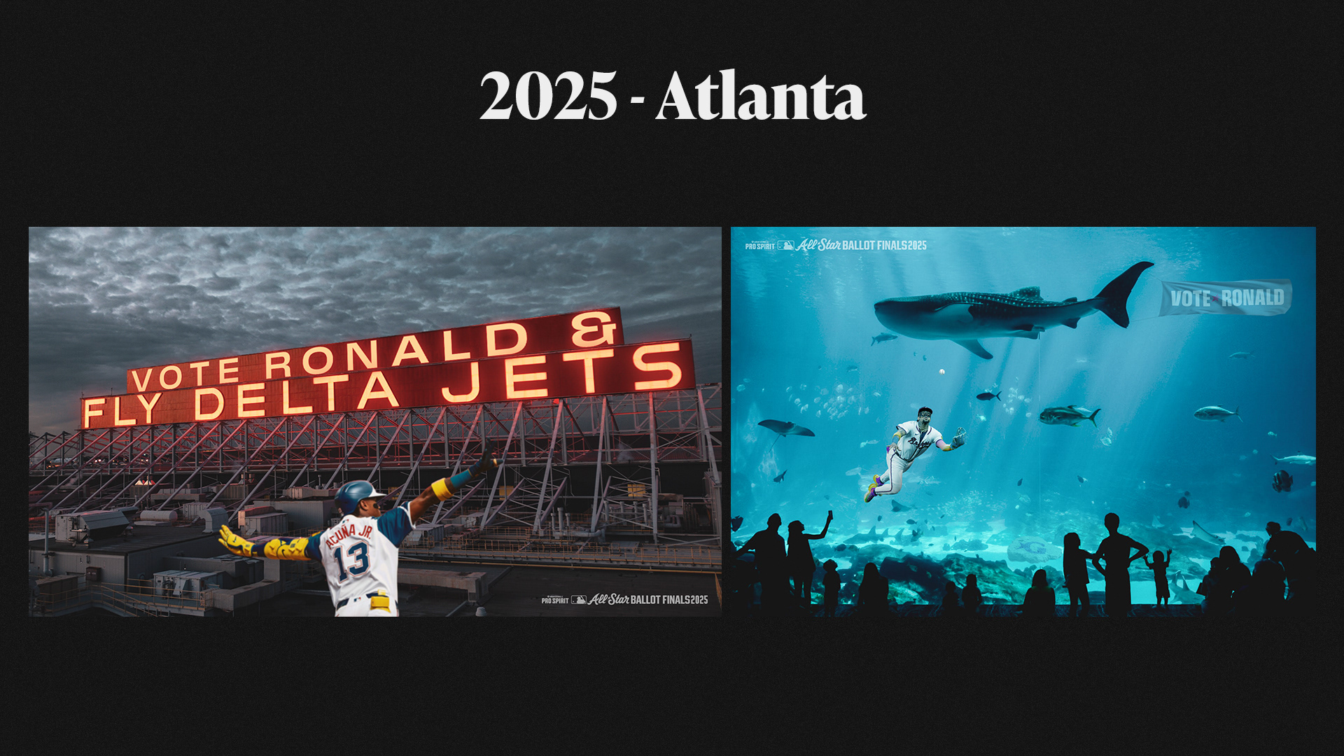 Every year, the Braves launch a campaign to promote voting players into the All-Star Game. The campaign often ties back to the city the game takes place in that year. Below are my contributions to the voting campaigns in 2022 and 2023. Each design lives in both a digital (e-mail, social media, paid advertising) and tangible (printed posters) marketing ecosystem.
